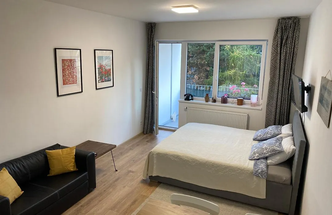 Lägenheten är placerad 6 km från Astronomiska uret i Prag och 4 km från Vitkov-minnesmärket. Restaurace U Kasparka och Restaurant Astra är belägna 9 minuters promenad bort.